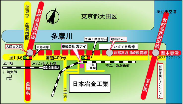 ・ 産業道路・首都高速横羽線からのアクセス ・大師河原交差点を海側にR409に入る